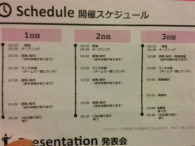 このテックキッズキャンプは3日間、しかも、1日6時間です。
